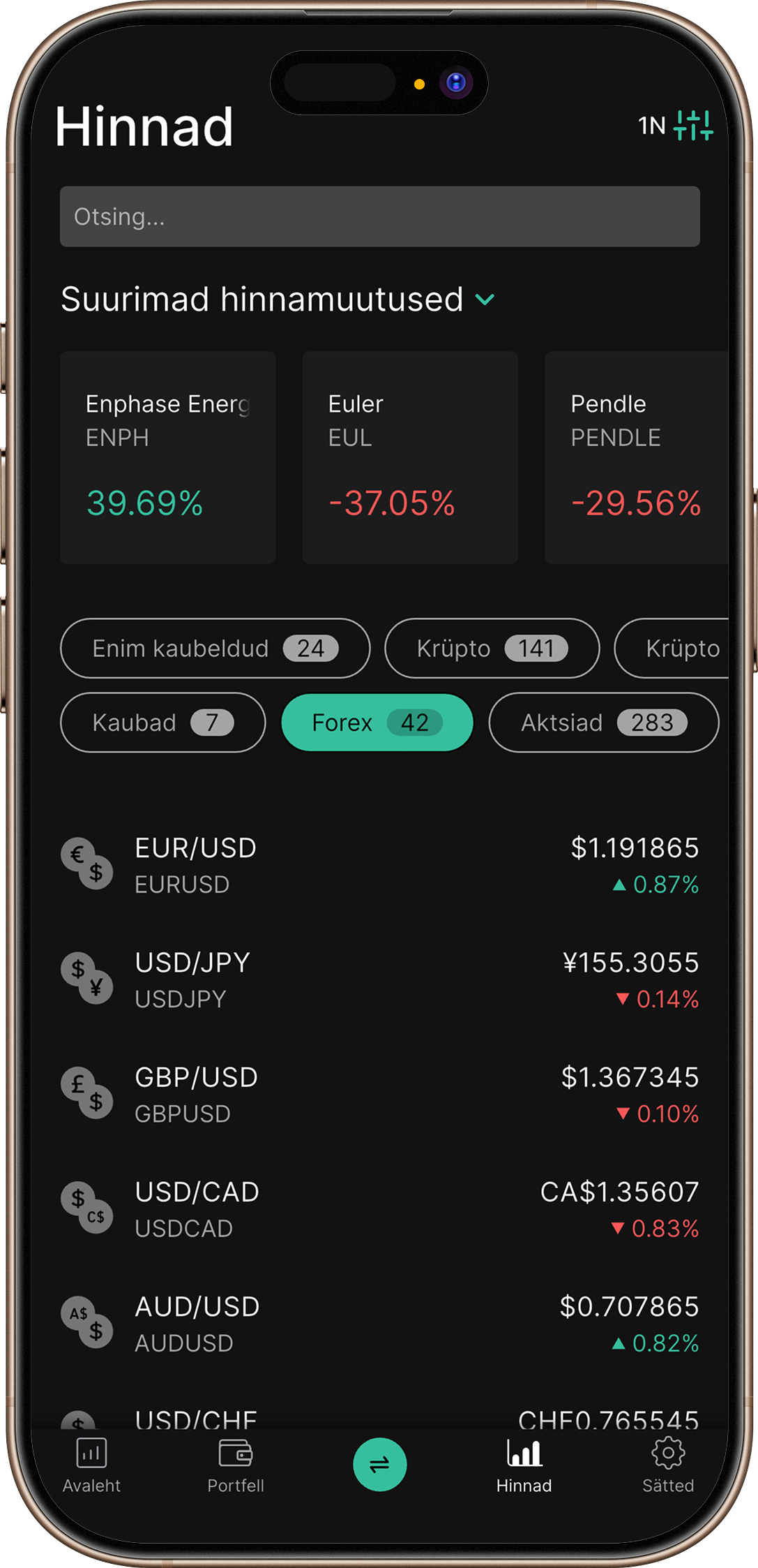 Forex kauplemine annab ligipääsu maailma kõige aktiivsemalt kaubeldavatele turgudele. Change’is toimub forex kauplemine hinnavahelepingute (CFD-de) kaudu, mis võimaldab kaubelda valuutade hinnaliikumistega ilma alusvaluutasid omamata.